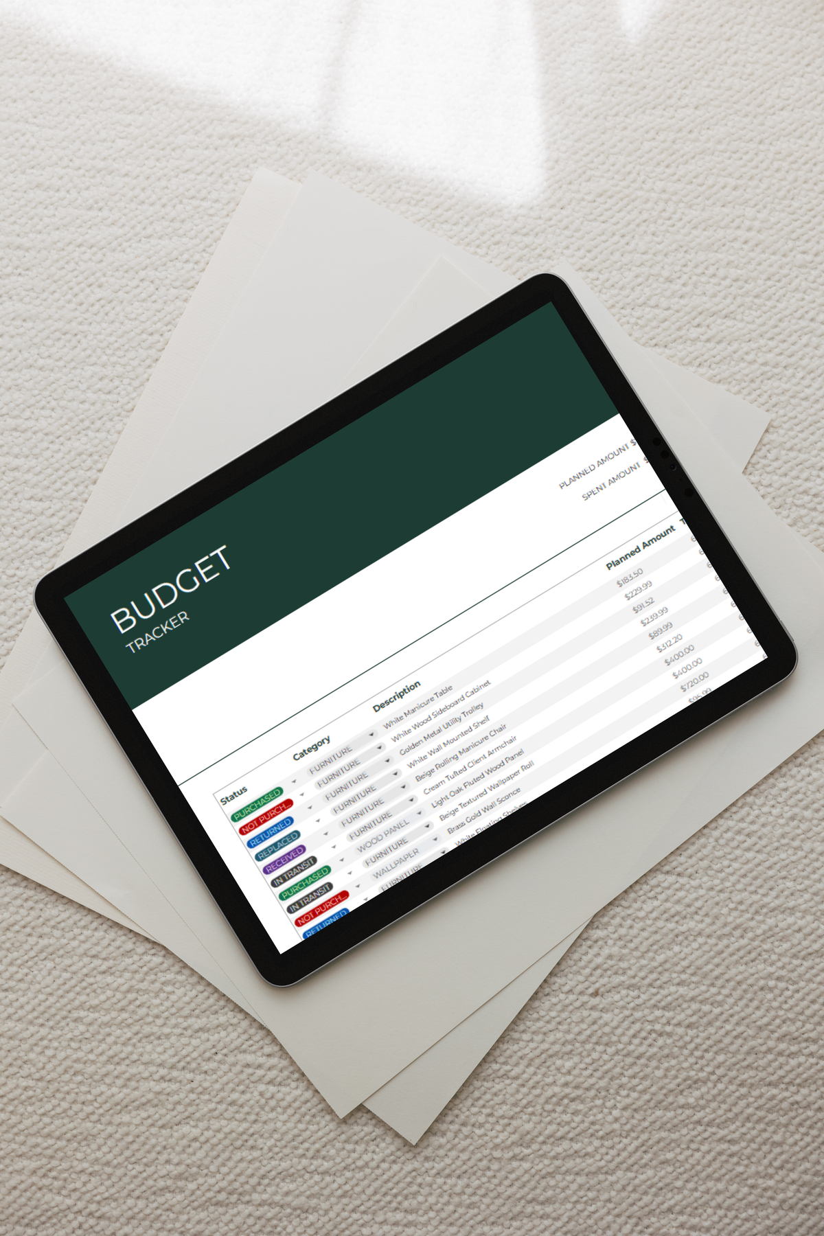 This elegant and easy-to-use spreadsheet helps you track every purchase, plan by priority, and understand the full investment in your space, with zero stress.