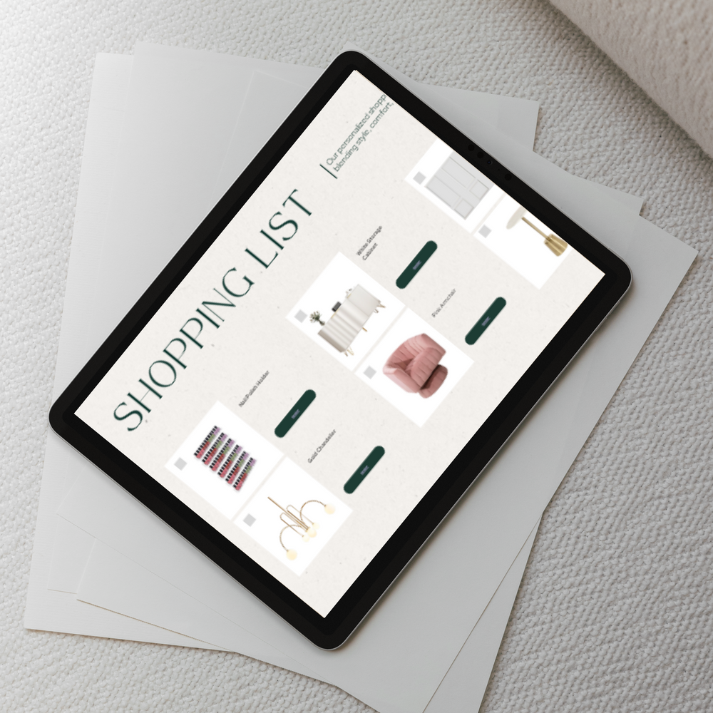 Inside your Studio Petit kit, you’ll find a fully interactive shopping list, curated with links to verified vendors and hand-selected pieces that match your design concept down to the detail.